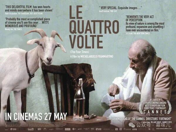 電影資料館藝術影院今晚首次為大家帶來意大利著名導演米開朗基羅·弗蘭馬汀諾的代表作《四次》,豆瓣8.2分,獲戛納國際電影節導演雙周最佳歐洲電影獎。導演的《洞》我們也曾在北影節為大家介紹過,頗受歡迎。