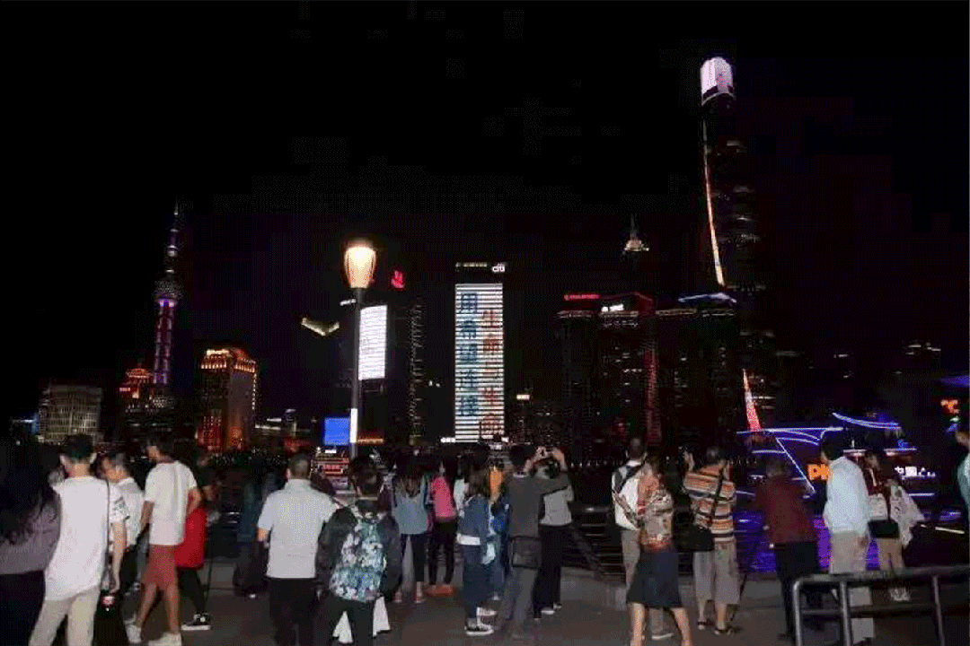 当夜,陆家嘴花旗大厦的灯光秀,滚了几十次我们的中英文标识。