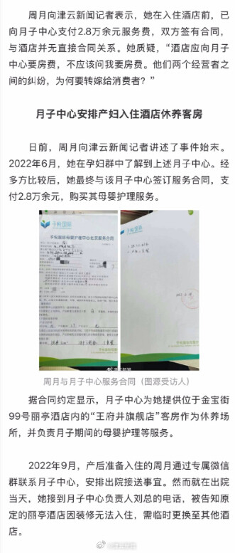 “费用早已全额交给月子中心,与酒店并无直接合同,为何经营者之间的纠纷要转嫁给消费者?”周月表示无法理解。她回忆,入住期间全程由月子中心工作人员代办手续,未与酒店前台直接接触,甚至连房费标准都未知情。与周月经历相似,同期入住的王淼(化名)在支付6.8万元服务费后,也被该酒店起诉追讨12万余元“房费”。