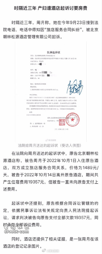 孩子已满三岁,北京的周月女士(化名)却因一笔三年前的“月子房费”成为被告。她告诉@津云新闻 记者,2022年9月,她在支付2.8万元服务费后,通过月子中心入住某亲子酒店休养。然而今年9月,该酒店以“未支付住宿费”为由起诉周月,追讨1.9万余元。