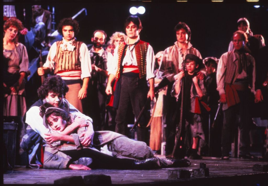 1985年伦敦巴比肯剧院上演的初版剧照,迈克尔·鲍尔饰演马吕斯、弗朗西斯·鲁菲尔饰演爱潘妮。 MICHAEL LE POER TRENCH/CML