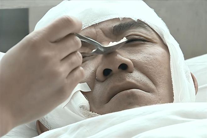 可是,听完了俩人的谈话,阿娟再按照刚才的动作喂李云龙时,他可就不张嘴也不配合,甚至都闭上眼睛装看不到咯,如下图: