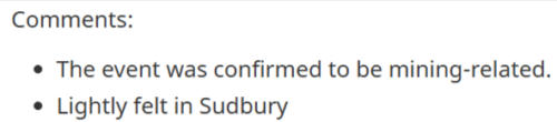 加拿大地震局確認該地震與采礦有關,起源於克雷頓礦。