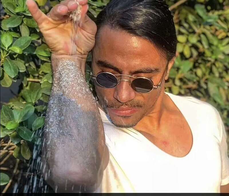 时间来到2017年,他的一段36秒的“Ottoman Steak”视频出现在了互联网上,视频里他利落地切开牛排后,突然摆出一个极其妖娆的姿势——左腿微屈,右臂高高举起,手指优雅地捻起一撮盐粒。