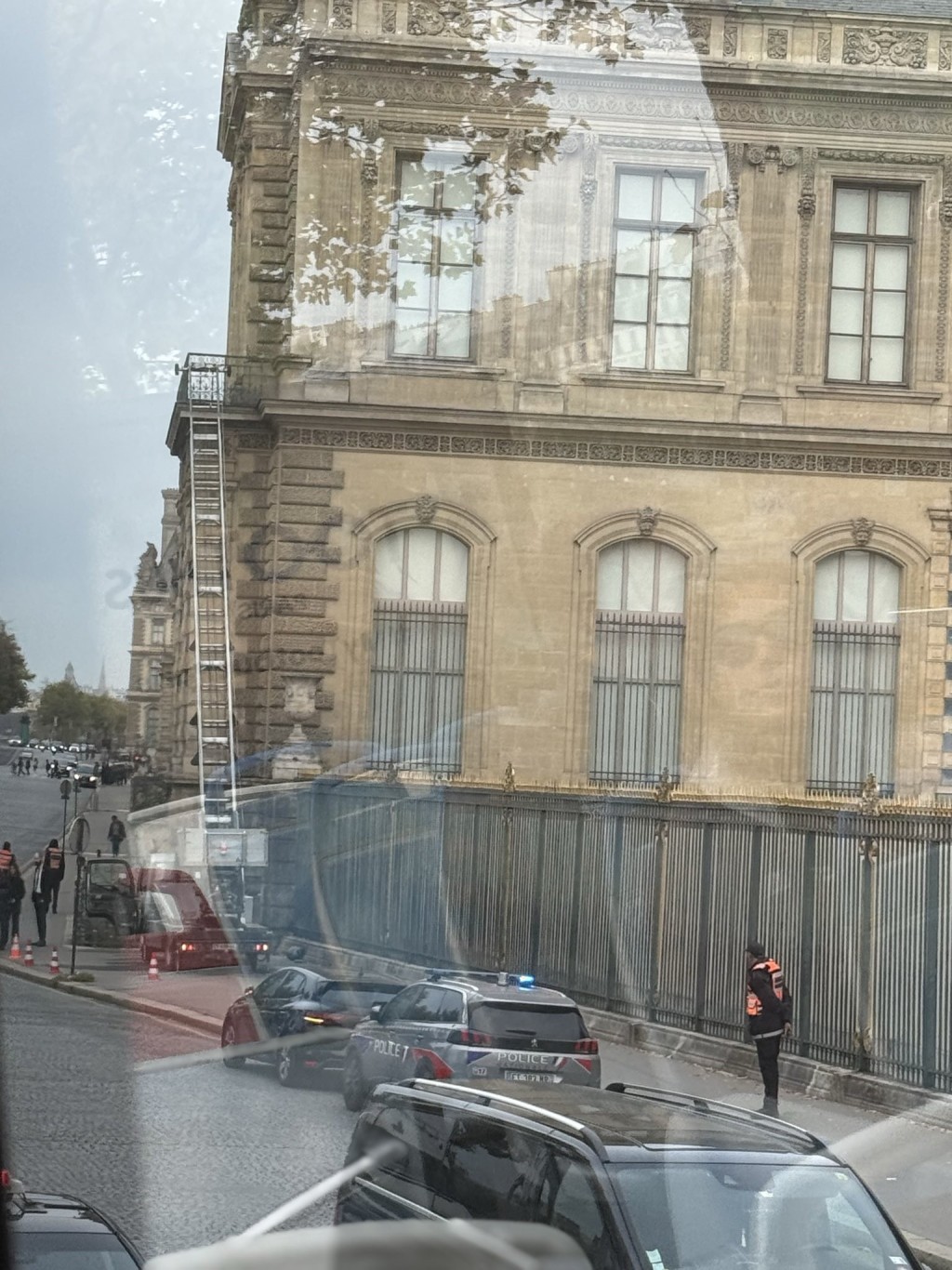 法国警方封锁疑是窃匪潜入罗浮宫的爬梯处调查。X@kaci_calladetti