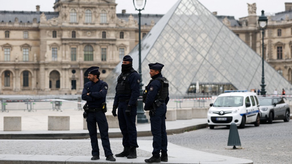 法国罗浮宫爆劫案,传3蒙面匪盗9珠宝骑电单车逃逸。路透社