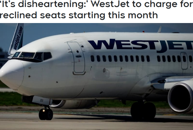 ‘It’s disheartening:’ WestJet to charge for reclined seats starting this month #westjethttps://t.co/eu7JSxSDkn— Gary C. Bizzo ** (@garybizzo) October 24, 2025
