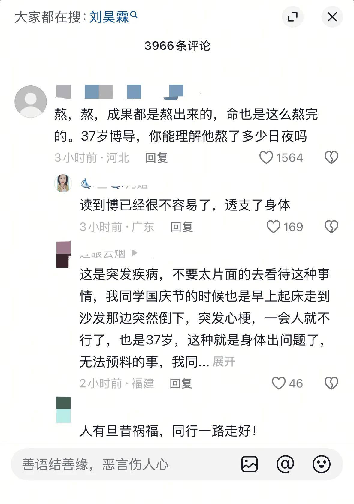 网友们倒是能理解这种情况,觉得大概率是心血管方面的问题,毕竟现在很多年轻人突发这类疾病,都和长期劳累、压力太大有关,刘昊霖平时那么拼,很可能是身体早就扛不住了。