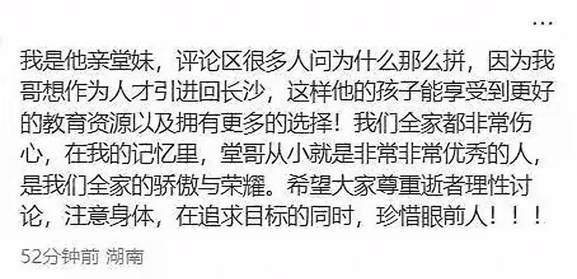 他的亲堂妹在网上说了原因,说刘昊霖一直想通过人才引进的方式回长沙工作。