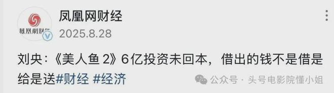 8月,投资人刘央自曝她为周星驰《美人鱼2》投入6亿,至今毫无动静。6亿资金被套牢,光按年化5%算,7年利息就约2.1亿。