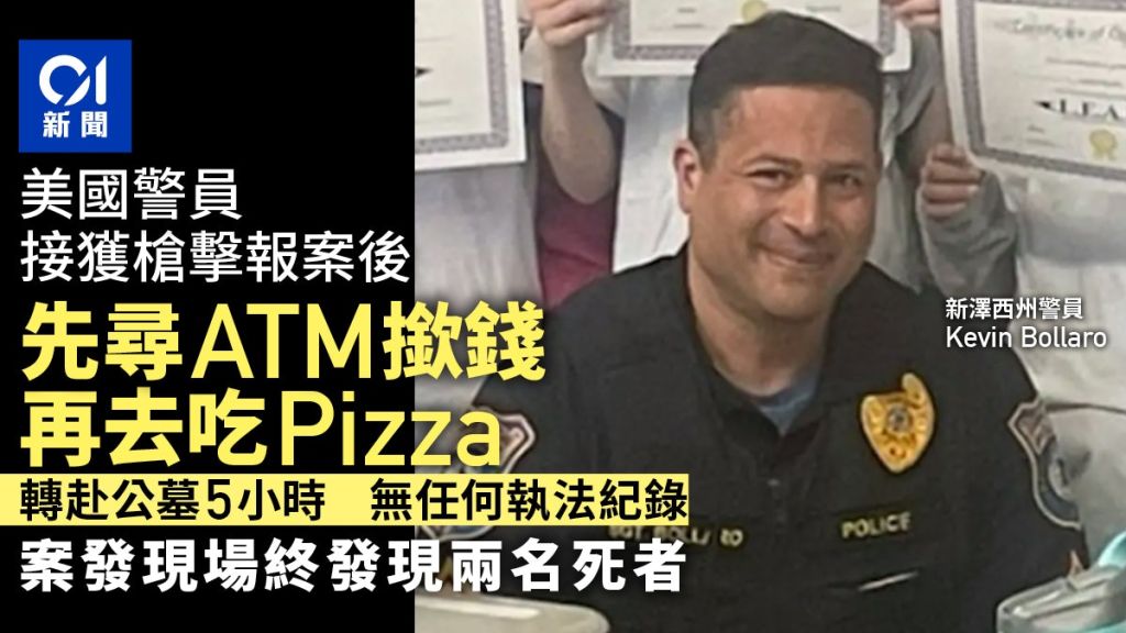 美國新澤西州一名警員在處理一宗雙重命案期間,接獲911報案後並未馬上趕往疑似槍擊現場,而是先找ATM機取錢,再去披薩店吃披薩(Pizza),令人詫異。