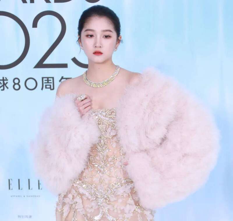 當然,這裡沒有看不起網紅和小明星的意思,95花關曉彤算是ELLE盛典紅毯上較為知名的嘉賓了,她梳著大光明,穿著ES秋冬當季高定,戴著高級珠寶,一樣沒有陽光四射的大明星感。