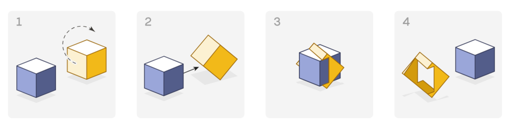 要理解立方體如何穿過自己,可以想象一只立方體的“影子”。如果立方體放平,影子是正方形;若將一個角朝上,影子則變成正六邊形。Wallis發現,正方形影子剛好能嵌入六邊形中,於是沿垂直方向鑽洞,另一顆立方體就能穿過。一個世紀後,Pieter Nieuwland找到更好的角度,使通道能容納比原立方體大6%的方塊。
