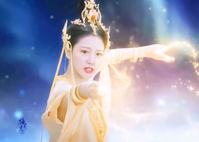 《長月燼明》中,朱麗嵐飾演的金神戲份不多,完全是背景板一樣的角色,但清冷仙子的模樣還是驚鴻一瞥,金神的造型更顯神聖莊嚴。從清冷仙子到嫵媚坊主,換個造型差點讓人認不出,展現了演員極強的可塑性。
