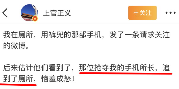 甚至看到别人在厕所里发条“求助”的微博,都怒吼吼的冲进去。心虚到这般地步,真叫人瞠目结舌。人贩子看了估计都有点莫名其妙吧,你怎么比他还慌?