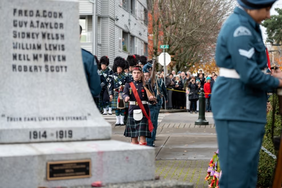 高贵林的纪念日仪式和游行由高贵林皇家加拿大军团第 263 分会主办,向公众开放,以表达敬意。游行队伍将于上午 10:30 左右从 Como Lake 中学出发,沿温斯洛街(Winslow Street)蜿蜒前往蓝山公园(Blue Mountain Park)退伍军人路(Veterans Way)上的纪念碑,仪式将于上午 11点 左右开始。