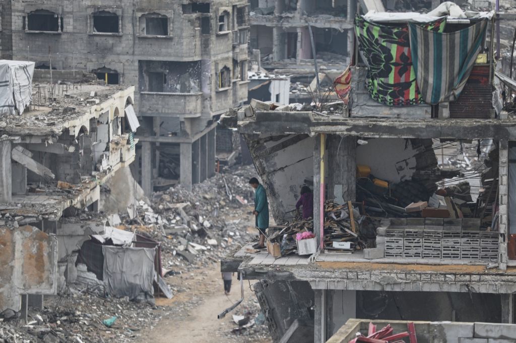 2025年11月14日,加萨走廊加萨市,民众在废墟中生活。美联社