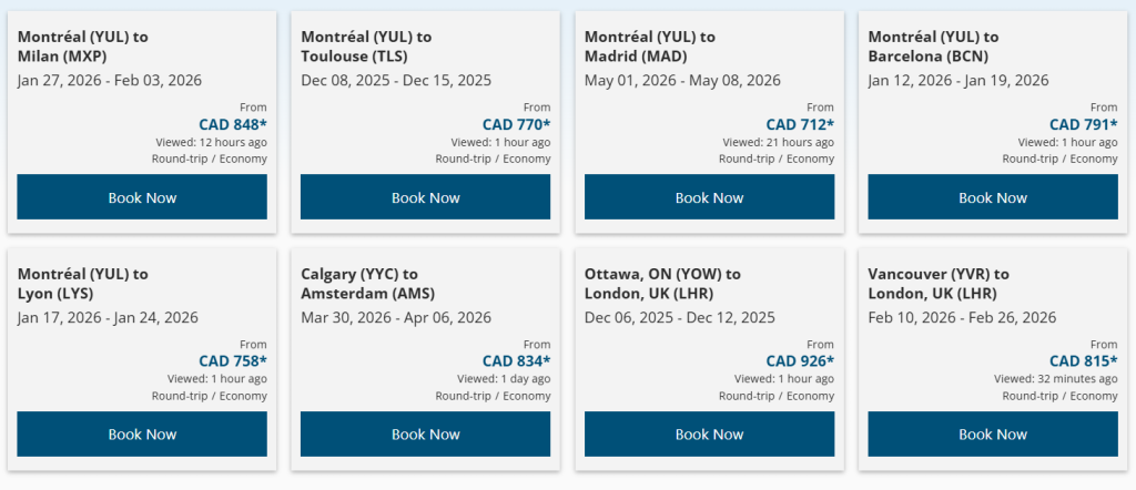 加拿大航空尚未宣布黑五的正式促销活动,但目前正在为从包括温哥华在内的几个加拿大大城市飞往欧洲的机票 (Basic, Standard与Flex 舱位)提供折扣,旅行日期为2025年12月1日至2026年4月25日。