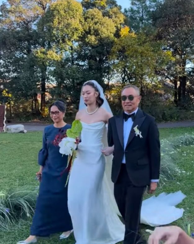 作為這場婚禮的核心長輩,霍震霆與朱玲玲的同框格外引人注意。當天霍震霆身穿黑色禮服,搭配白色襯衫,雖已年過七旬,但身姿依然挺拔。朱玲玲則以一身白色套裝亮相,內搭淺色絲巾,妝容精致得體,盡顯“港姐”冠軍的優雅氣質。兩人站在賓客第一排,全程面帶微笑注視著台上的新人,在新人鞠躬致謝時,還同時起身鼓掌,互動自然和諧,絲毫沒有前夫妻的尷尬。