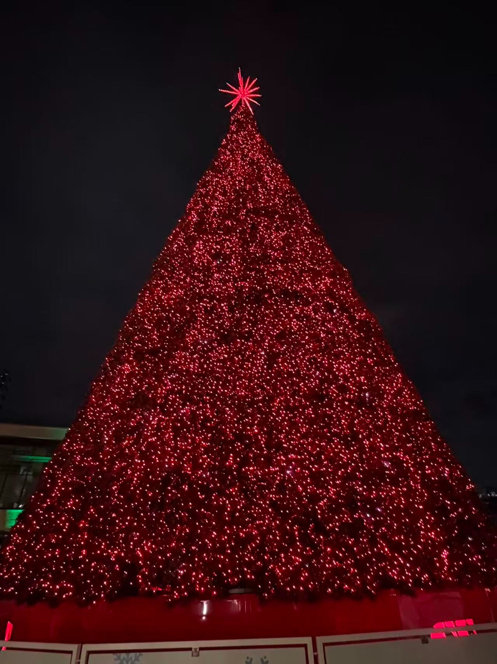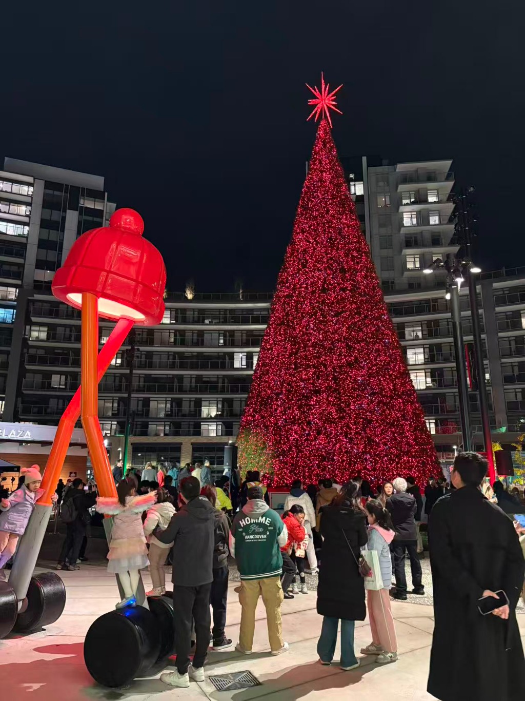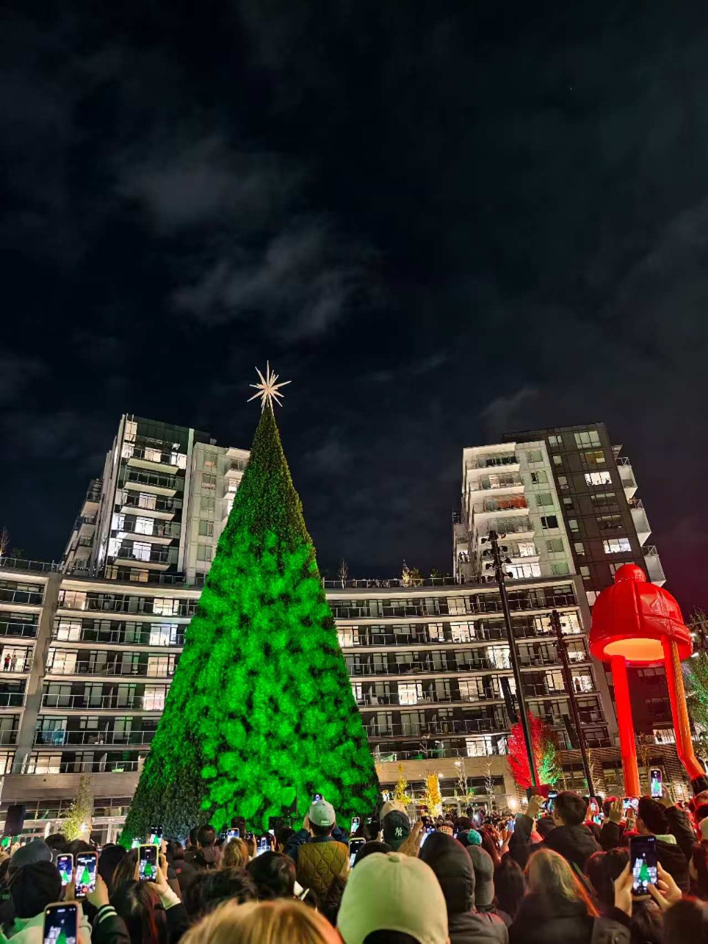 昨天下午 6 时,列治文购物中心(CF Richmond Centre)举行点灯仪式 ,正式启用一棵高达 78 英尺(约 23.8 米)的人工圣诞树。