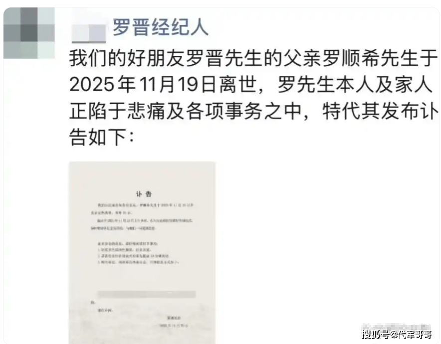 11 月 23 日,北京八宝山殡仪馆被阴霾笼罩,一场庄重而肃穆的追悼会在此举行,主角是演员罗晋的父亲罗顺希先生。