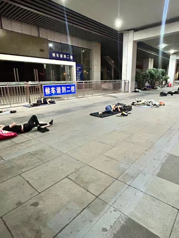 睡在苏州昆山火车站。(受访者提供)