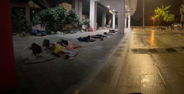 火车站躺满了无处安身的人