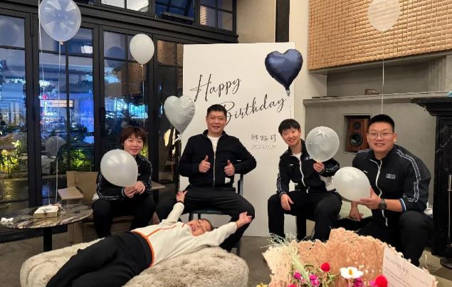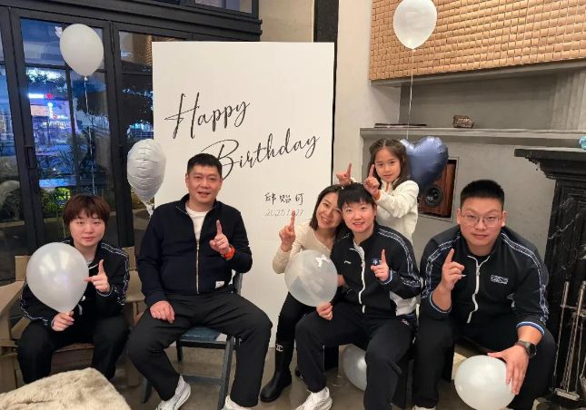11月27日晚,国乒教练邱贻可在社交平台晒出40岁生日的家庭聚餐照片,一张合影瞬间引发球迷热议。照片中,除了邱贻可的家人,现役国乒女队核心孙颖莎的身影格外显眼。她坐在邱贻可身旁,身穿简约的黑色运动服套装,手里攥着一个白色气球,嘴角挂着标志性的甜美微笑,与教练一家的互动自然又亲密,俨然已是这个家庭的一份子。