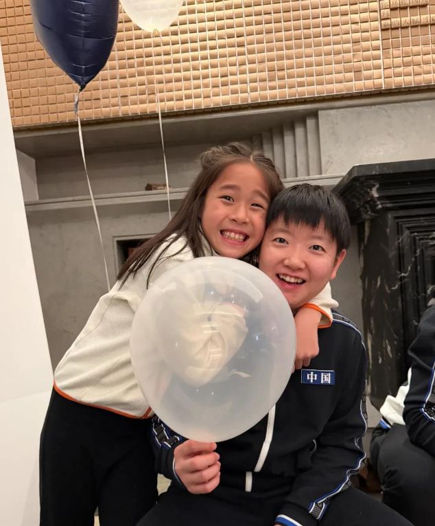 孙颖莎参加宴会 被5岁小女儿搂脖合影 像姐妹花