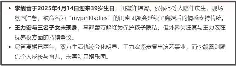 王力宏和李靓蕾离婚风波闹得沸沸扬扬,作为李靓蕾的闺蜜,许玮甯虽然没有公开发声,但一直陪伴在李靓蕾身边,2025年,怀着宝宝的许玮甯还陪着李靓蕾度过了她39岁生日。