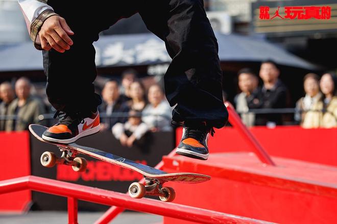 11 月 29 - 30 日,Jordan 品牌在成都东郊记忆带来了“就玩真的”主题活动,呈现了一场融合街头文化与运动精神的沉浸式滑板聚会。