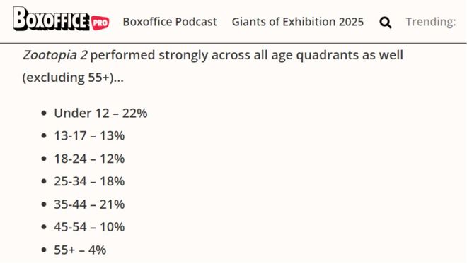 这一受众结构的变迁,尤其是女性观众占比明确提升,为动画电影带来了独特的爆款密码。数据显示,《哪吒2》与《罗小黑战记2》的女性观众占比均超过60%,《鬼灭之刃》剧场版预售购票女性占比超60%,而BoxOfficePro的报告也指出,《疯狂动物城2》全球女性观众占比约60%,其在中国市场预售的女性观众占比更是高达70%。