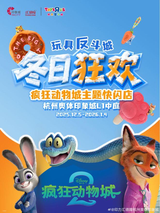 近期的《疯狂动物城2》也是授权前置化的典型案例,其在上映前落地40余起授权合作,截至发稿日,据不完全统计,联名数量已经突破70个,覆盖潮玩、茶饮、服饰、美妆、数码等十余个消费领域。其中与母婴品牌兔头妈妈的联名牙膏、唇膏等产品,在淘宝和抖音的销售额近千万元,成为其衍生品类中的“销量黑马”。同时,《疯狂动物城2》与玩具反斗城联名快闪店正在杭州多地限时落地,实现商业价值的线下转化。其中杭州奥体印象城快闪即将于12月5日正式开业。