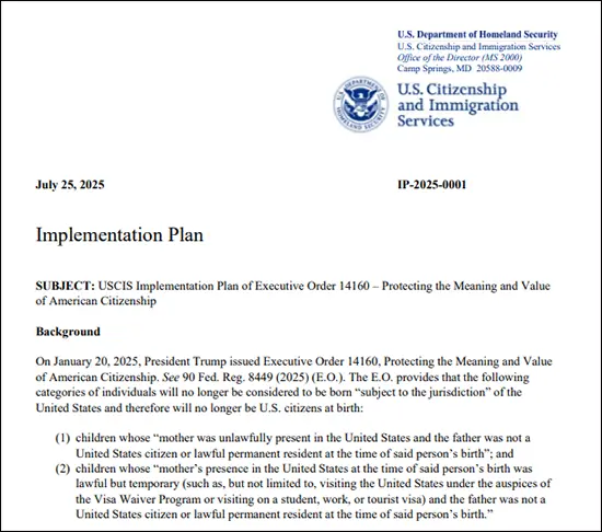 特朗普政府在签署的第14160号行政命令及司法部提交给最高法院的上诉状中写道,第14修正案原意仅覆盖“新获自由奴隶及其后裔”,不包括“临时来美外国人或非法移民之子女”。