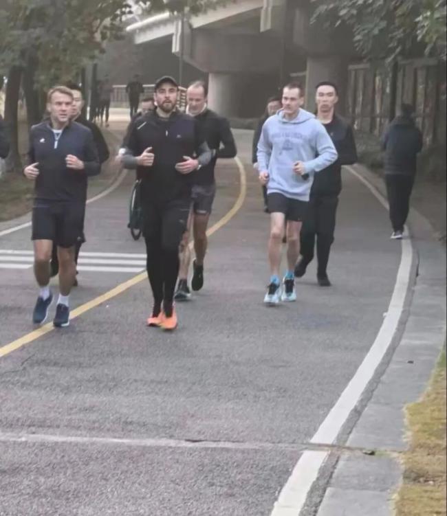 马克龙清晨在公园里慢跑,被市民远远拍到;