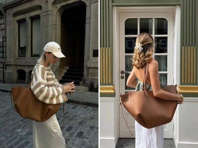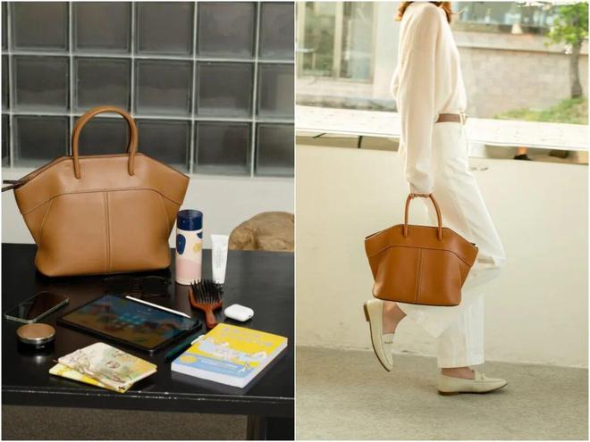 她还背过一只别具一格的YEE SI风琴托特包。包 身 是荔枝纹牛皮,耐磨易保养,加上这个配色自带文艺质感。主打一个貌美又能装,13寸的电脑能放下。参考价:2002元。