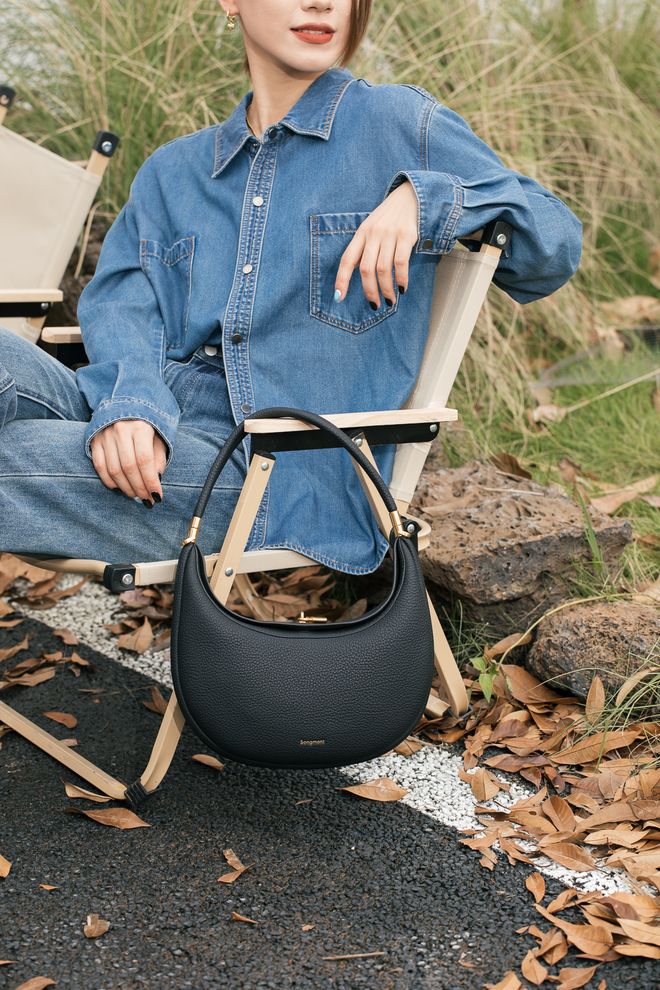 月弯包的包型顾名思义,仿佛一轮弯弯 的月亮,略带弧度的包口造型感很强。硬挺有型的包身能hold住各种场合~参考价:1880元。
