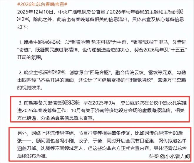 就在官方宣布启动2026春晚准备之后,有人在为春晚新的出路出谋划策,希望重新帮春晚找回年味和快乐。