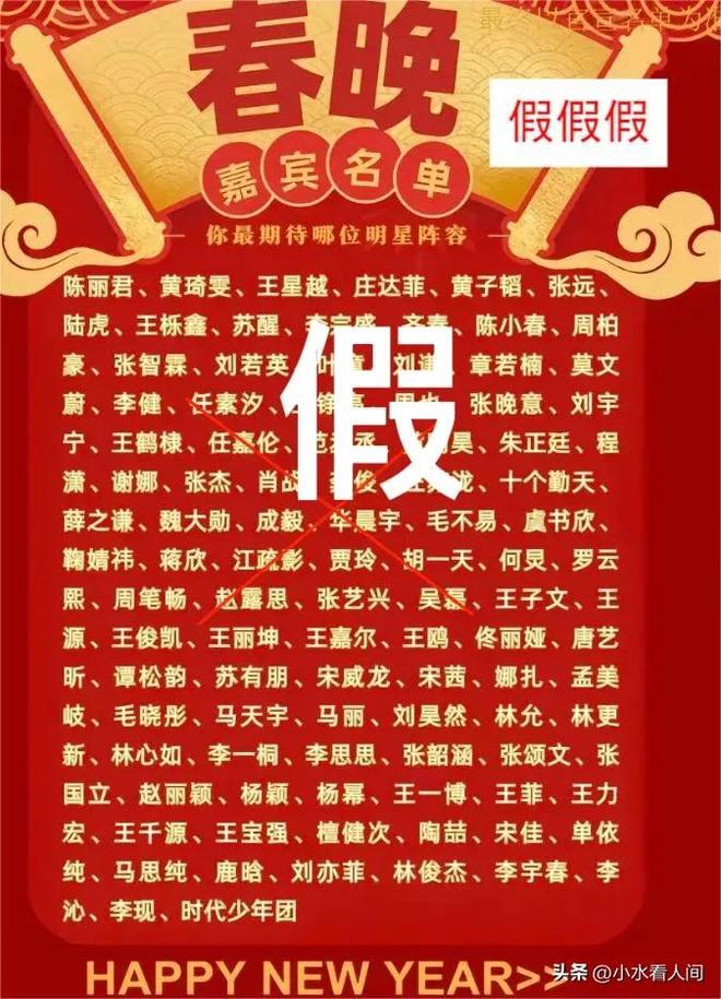 可是现在网上关于春晚拟邀的明星名单已经出现了非常多版本,各个版本都很离谱。
