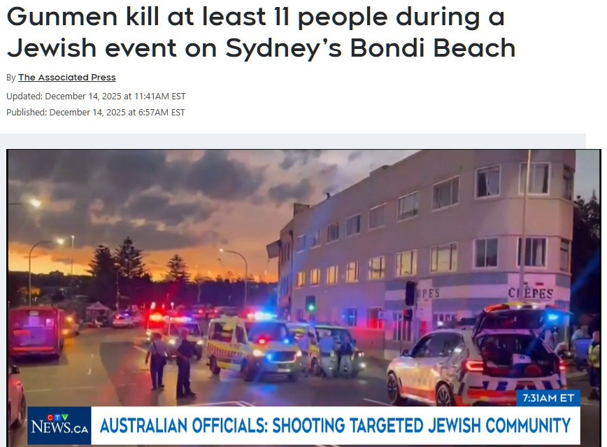 (加西网综合)据最新消息,周日,两名枪手袭击了悉尼邦迪海滩(Bondi Beach)的犹太光明节庆祝活动,造成16人死亡,40人受伤,其中包括儿童。澳大利亚总理安东尼·阿尔巴尼斯称这是一起反犹太恐怖主义行为,袭击了国家的心脏。
