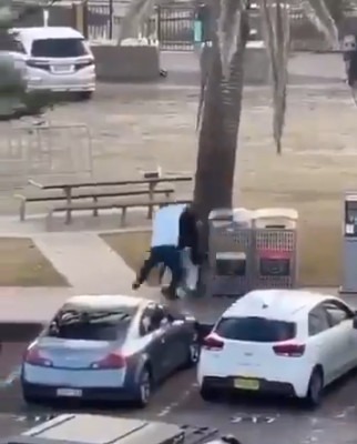 他趁着持枪歹徒不注意,从旁边停车场冲进去与歹徒扭打,并成功从对方手中夺下步枪,整个过程被在场惊恐的目击者拍下来。