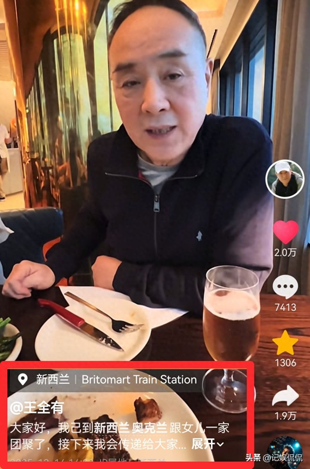 又一个“老戏骨”出国了!12月14日,“老戏骨”王全有发出视频,他说自己已经到了新西兰,与女儿一家开心团聚。王全有看起来心情很好,没有太多出国的不适应,并特意把奥克兰的定位发出来,透露接下来会分享更多在新西兰的美好生活。