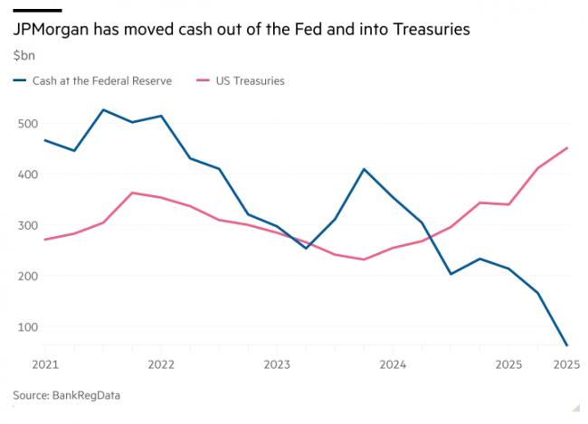 “很明显,摩根大通正在把存放在美联储的资金转向国债市场,”BankRegData创始人比尔·莫兰德表示,“在利率下行之前抢先布局。”