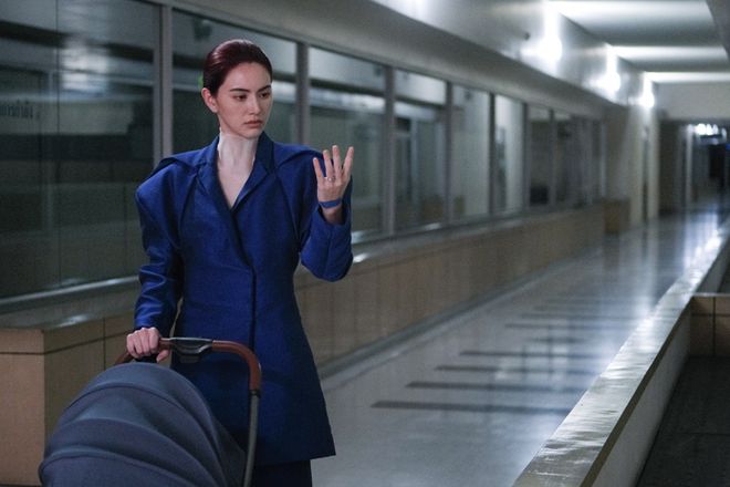 全片最让人瞠目结舌的时刻,莫过于丈夫与这台机器之间那场跨越生物界限的亲密戏了。那根冰冷的吸尘管成为情感的连接通道,这种人机互动的画面在荒诞之余,其实还有一些机械式的温暖。