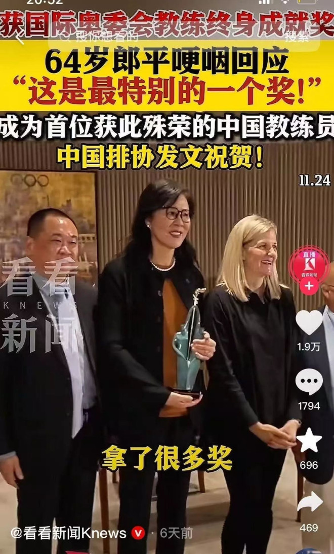 更令人振奋的是,她近期还荣获了由国际奥委会颁发的排球教练终身成就奖。