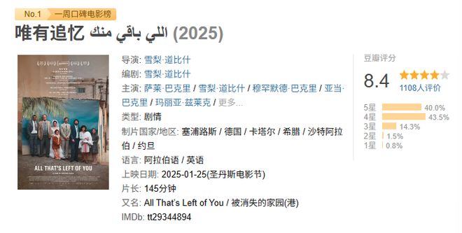 雪梨·道比什极具野心地铺展开一个家族三代人的命运绘卷,横跨整整近75年,影片既宏大又细腻,镜头优雅且饱含个人情感,让人联想到电影史上那些最为经典不朽的家族传奇故事。雪梨·道比什不仅融入自身经历自编自导,还亲自出演了本片,在她饱含深情的讲述下,影片中位于约旦河西岸的富庶家庭,原本过着和乐融融的生活,却因突如其来的战火而饱受摧残,不仅失去了豪宅、庄园和家族的橘子园,也受尽了屈辱。本片精心塑造了生动鲜明的角色群像,他们的生活、梦想和矛盾相互交织,高尚的他们在不公的浪潮中颠沛流离。尽管历经种种磨难,生活仍在继续。这是战火对人的摧残,也是导演借助电影对世人的警示。