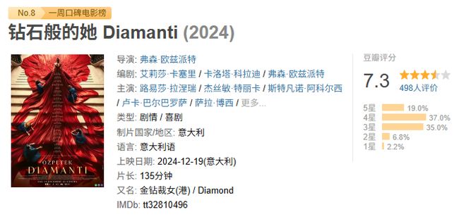 今年的一部意大利佳作,媒体称其为“一封写给女性与影坛的动人情书”,赞誉导演用极其柔和的镜头语言,将女性如钻石般多面、闪耀且坚硬的特质表现得淋漓尽致,被评价为年度最具情感温度的意式佳作。