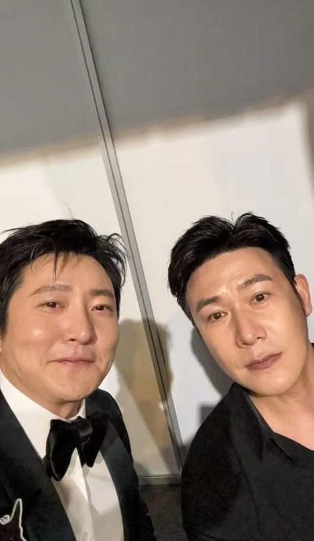 演员郭京飞在最新动态中分享出在某颁奖活动上与亲姐夫陆毅合照,难得同框的连襟俩吸引不少网友关注。