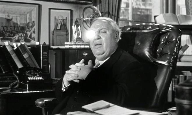 刘风:威尔弗莱德爵士不是侦探,而且他的出身很不一样,他是贵族,还是一个很生活化的贵族。而波洛是比利时人,虽然生活也很富裕,有时候的一些用词,包括他说英文的时候,也是非常考究的,但他并不是贵族。反倒他这样的真正的贵族——查尔斯·劳顿也演过的丘吉尔——可能就没什么架子,甚至他有时候用词还比较粗鲁。所以,我最后发现这个大律师的角色跟波洛区别是很大的。