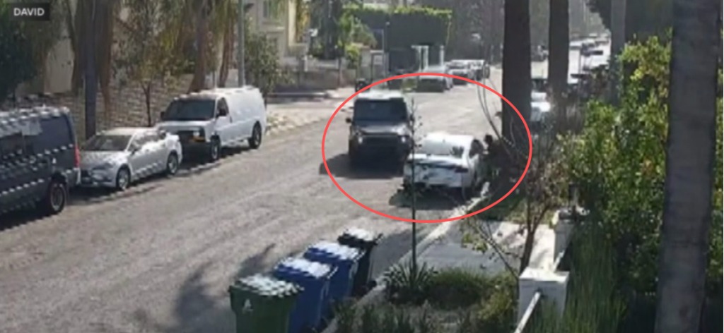一段清晰的监控录像显示,事发于周六下午,在谢尔曼奥克斯,这名女子驾驶奔驰G级越野车高速行驶,最终撞上了嫌疑人的白色轿车。